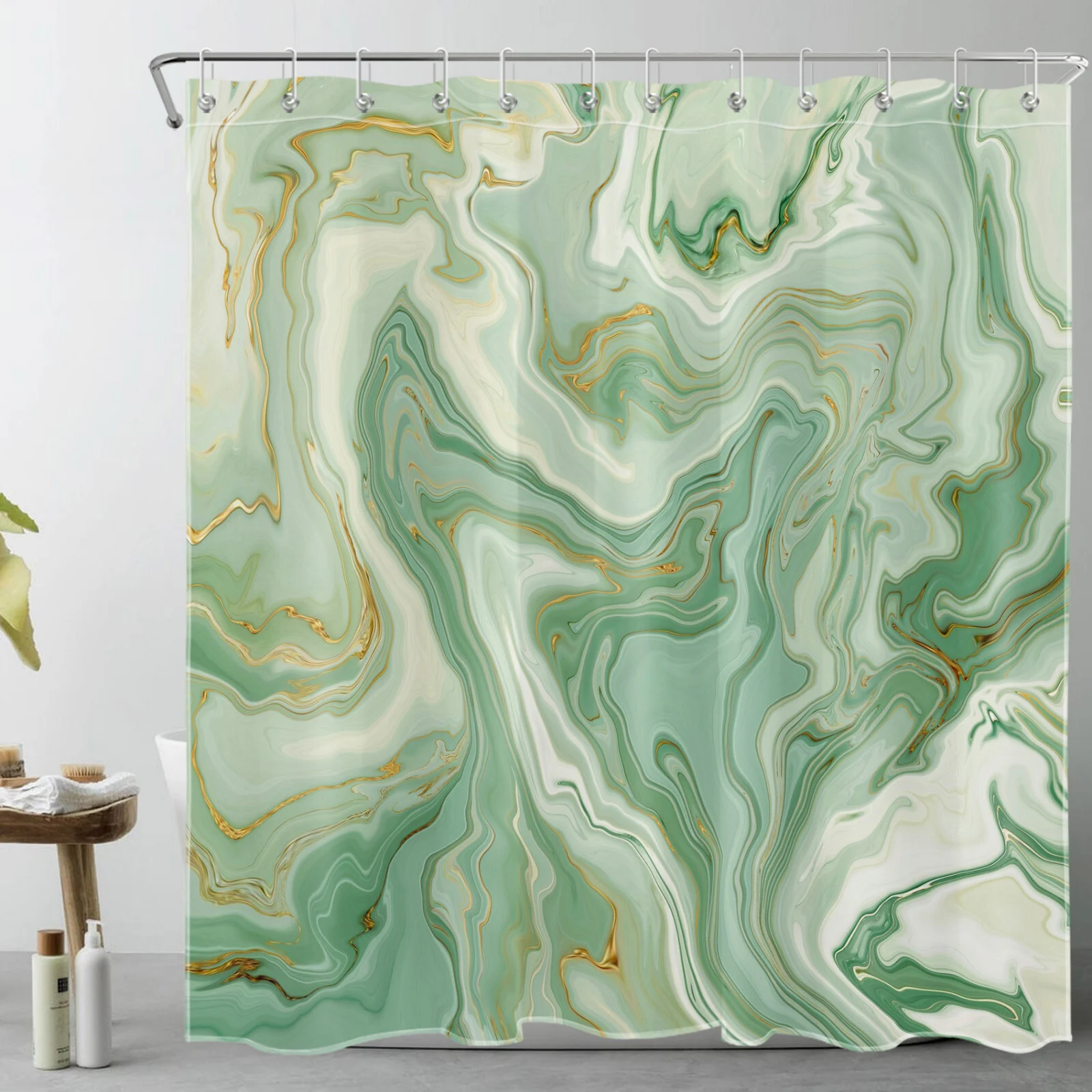 Minimalist Green and Gold Abstract Marble Shower Curtain