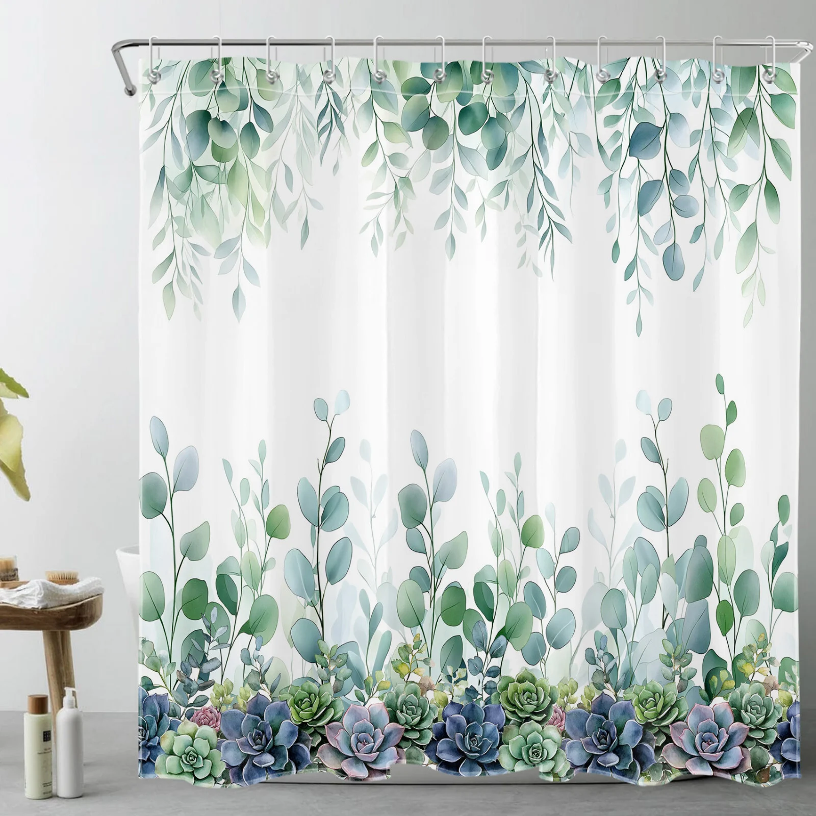 Rustic Farmhouse Botanical Green Leaves Shower Curtain