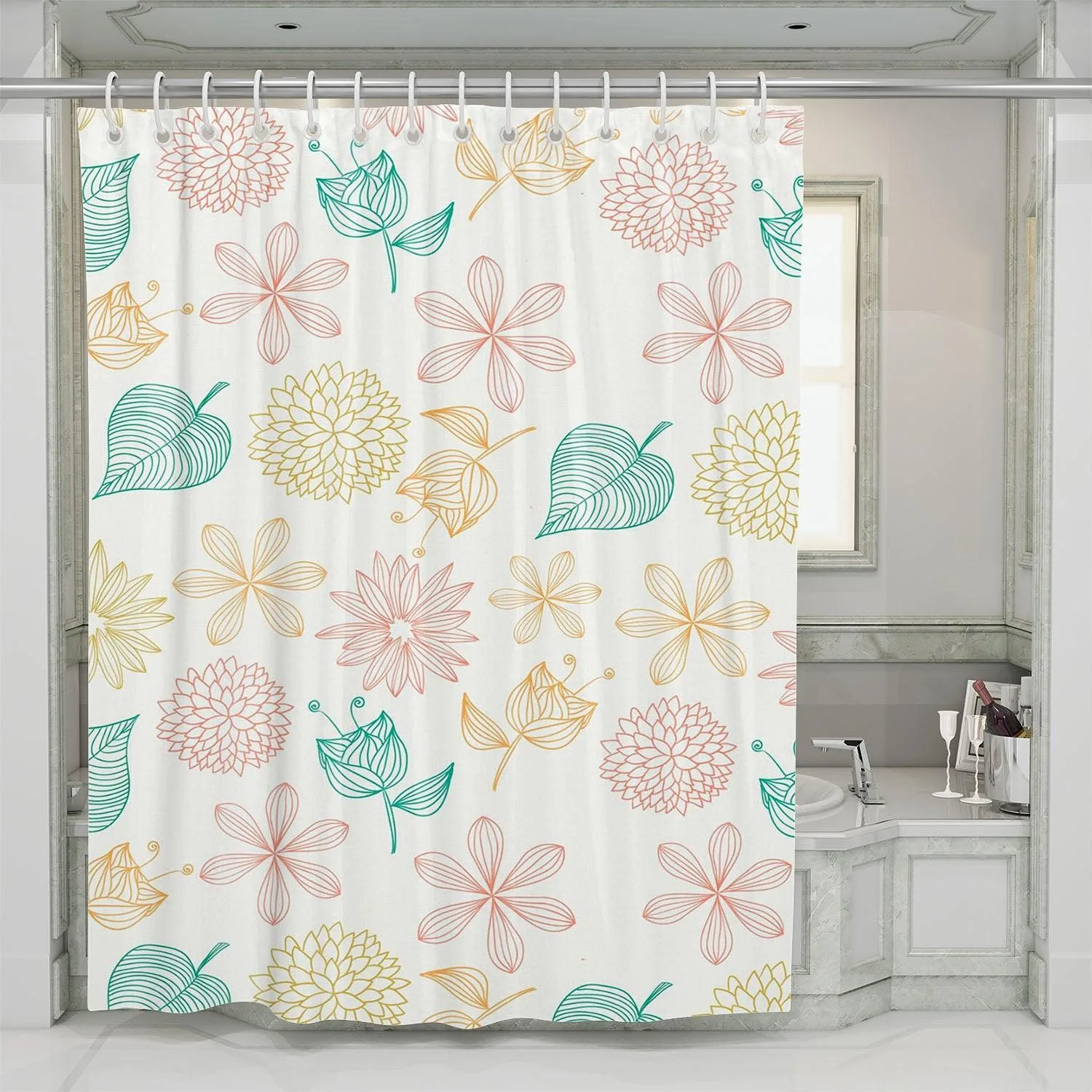 Sunflower And Leaf Stroke Pastel Shower Curtain